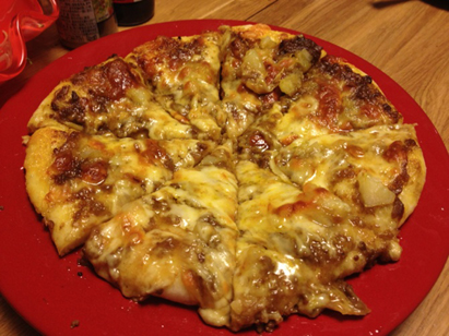 今日のメイン、mica作『キーマカレーとガーリックマヨのチーズたっぷりピザ』
